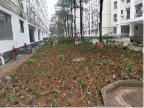 持续做好楼栋日常保洁和公寓园区绿植养护工作。进行日常保洁约19万平方米,清理明沟水沟长度约3270米;本周完成东31-32园区的绿植补种。