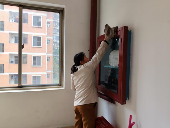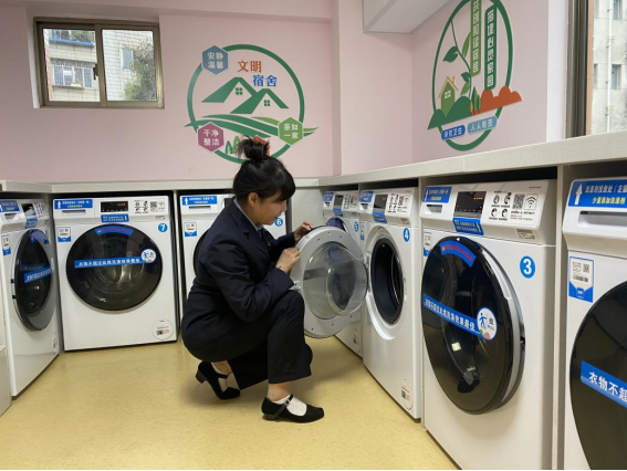 为营造学生公寓园区宜学宜居的环境,认真做好园区内消防设备设施、热水机组、洗涤设备等各种设备设施和40间自习室、15个多功能室的保洁维护工作;做好学生公寓园区内547个生活设施(其中公共长椅147张,乒乓球桌117张,晾衣架173个、健身器材110个)的维护工作。