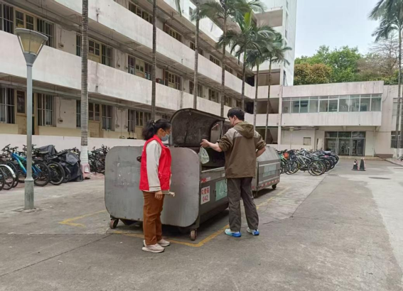 本周垃圾分类督导员共处理垃圾约39.421吨,其中厨余垃圾约18.93吨、其他垃圾约20.49吨、有害垃圾约 0.001吨;垃圾分类督导员走访学生宿舍并发放垃圾分类宣传单234多张,向257多位同学宣传垃圾分类知识。