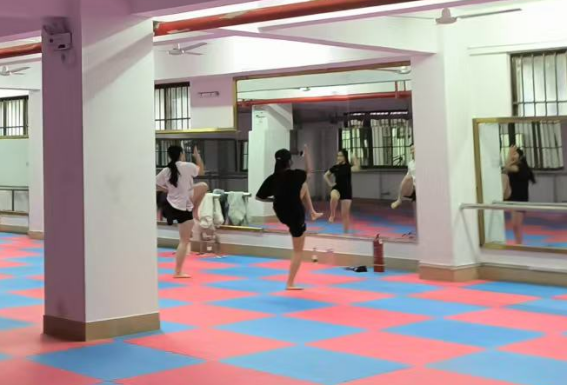 同学们在健美操馆健身