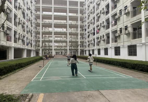 同学们在园区打羽毛球