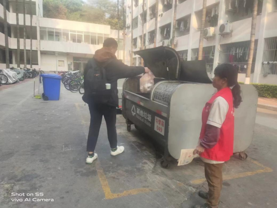 劳动教育岗协助督导员进行垃圾分类宣传工作