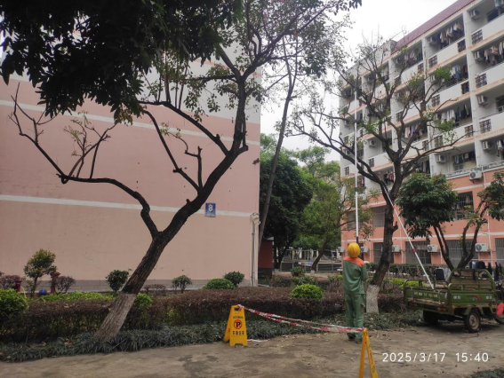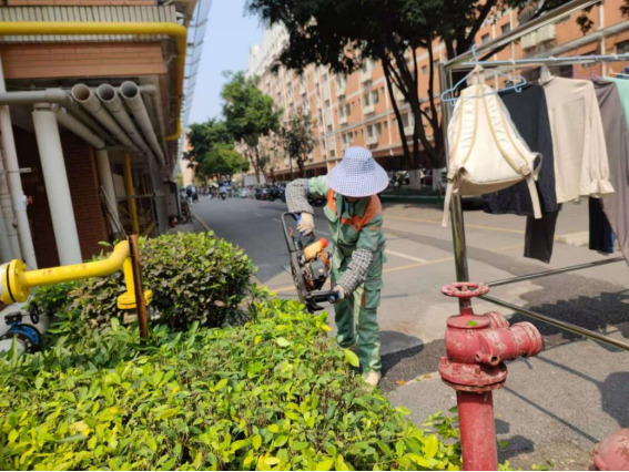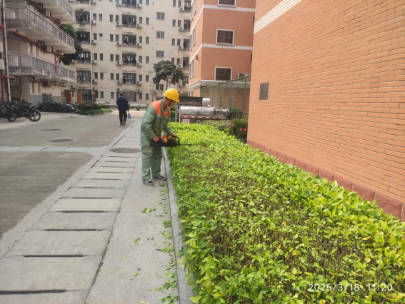 本周绿化带清除杂草面积约5750平方米;修剪绿植面积约11504平方米;各类树木枯枝、低枝及靠近建筑物等树枝修剪12棵;各园区进行日常保洁约19万平方米,清理明沟水沟长度约3270米。