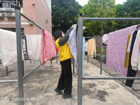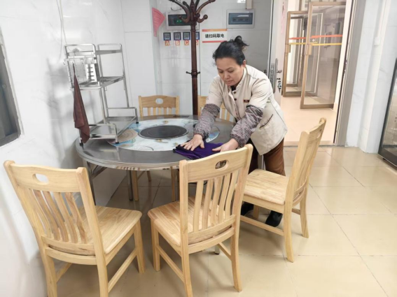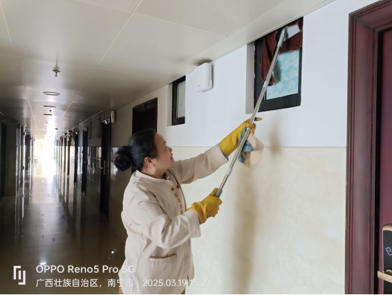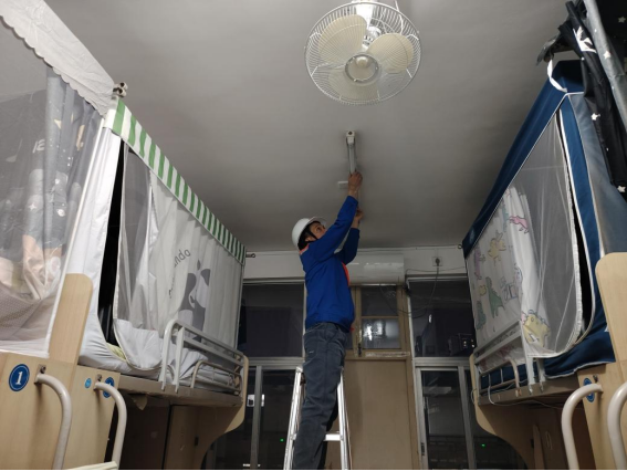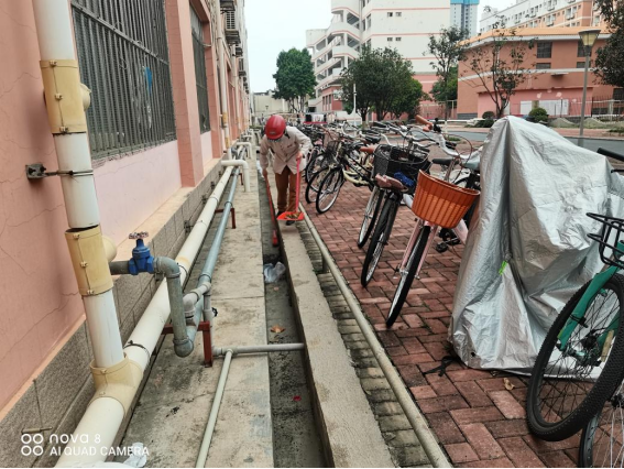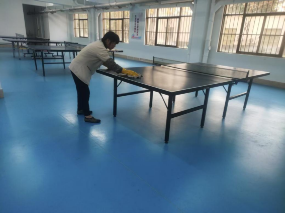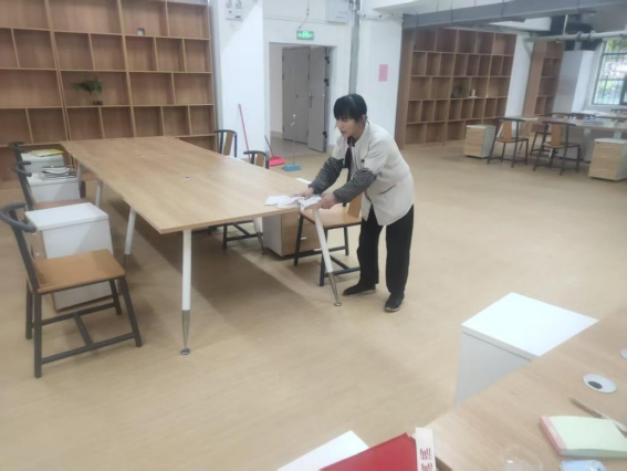 为营造学生公寓园区宜学宜居的环境,认真做好园区内消防设备设施、热水机组、洗涤设备等各种设备设施和40间自习室、15个多功能室的保洁维护工作;做好学生公寓园区内547个生活设施(其中公共长椅147张,乒乓球桌117张,晾衣架173个、健身器材110个)的维护工作。