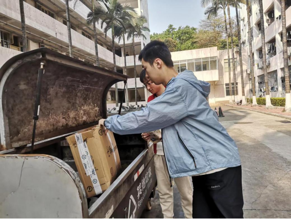 本周垃圾分类督导员共处理垃圾约41.041吨,其中厨余垃圾约19.29吨、其他垃圾约21.75吨、有害垃圾约 0.001吨;垃圾分类督导员走访学生宿舍并发放垃圾分类宣传单164多张,向189多位同学宣传垃圾分类知识。
