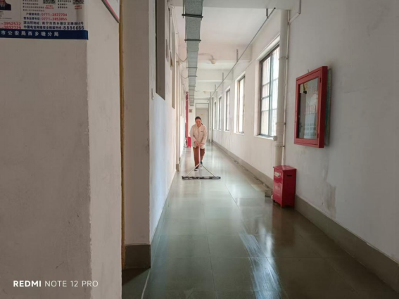 劳动教育岗同学协助阿姨进行楼栋卫生保洁