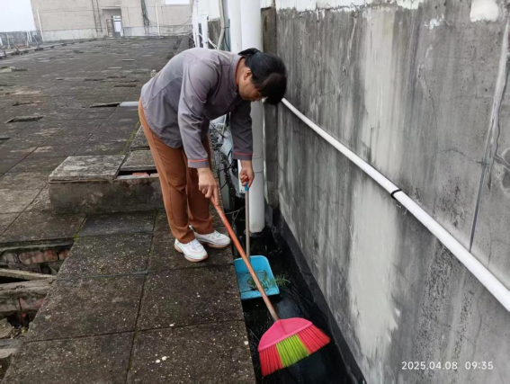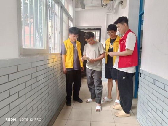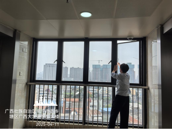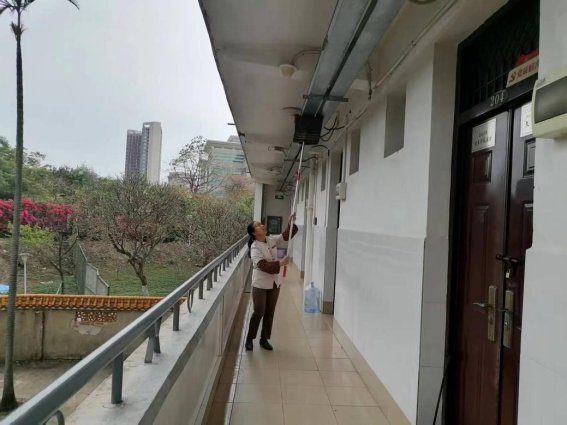 为应对极端天气,学生公寓开展安全排查工作。公寓服务中心对公寓楼的排水设施、楼栋围墙、设施设备、高大树木及宿舍楼周边自然环境等进行全面排查,对发现的隐患和问题及时处理及汇报。