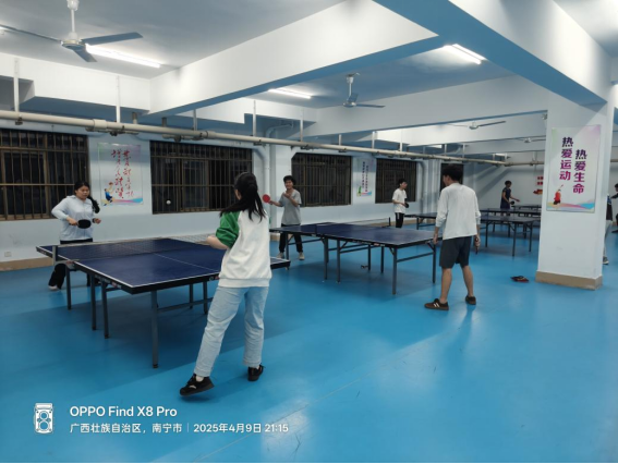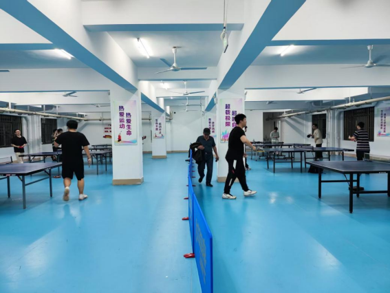 同学们在园区乒乓球馆打乒乓球