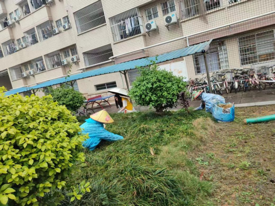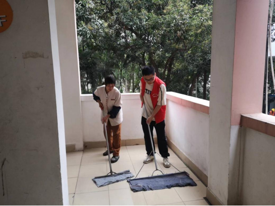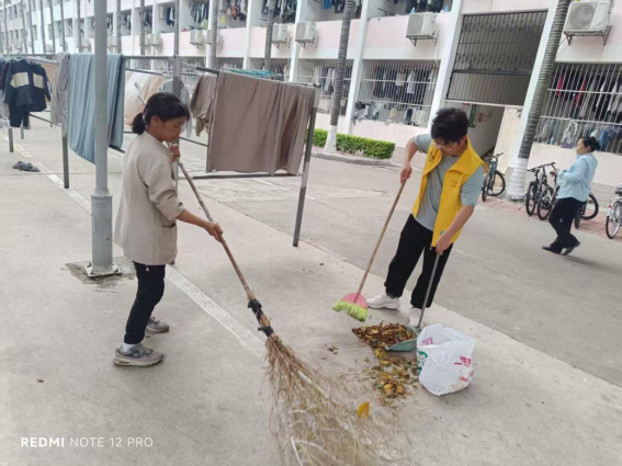 劳动教育岗同学协助阿姨进行外围循环保洁