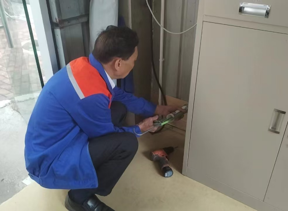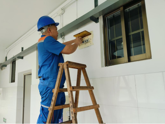 逐间对配电房进行线路排查,拧紧螺丝工作