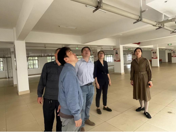 工作人员与住建厅的人员参观东31-35栋学生公寓热水系统