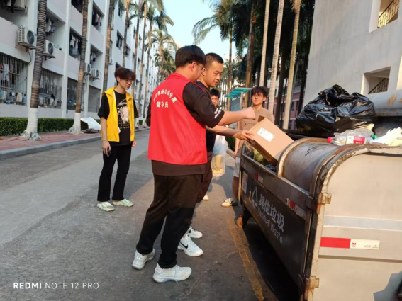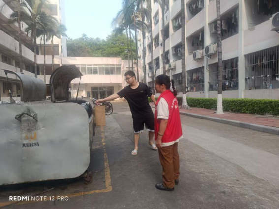 本周垃圾分类督导员共处理垃圾约42.6925吨,其中厨余垃圾约20.49吨、其他垃圾约22.19吨,有害垃圾约0.0025吨;垃圾分类督导员走访学生宿舍并发放垃圾分类宣传单204张,向217位同学宣传垃圾分类知识。