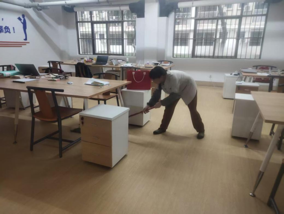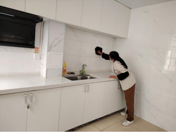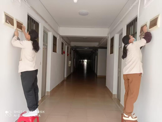 为营造学生公寓园区宜学宜居的环境,认真做好园区内消防设备设施、热水机组、洗涤设备等各种设备设施和40间自习室、15个多功能室的保洁维护工作;做好学生公寓园区内547个生活设施(其中公共长椅147张,乒乓球桌117张,晾衣架173个、健身器材110个)的维护工作。