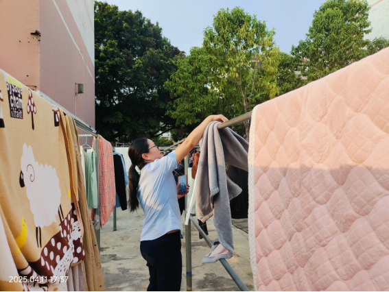 帮助学生晾晒被褥