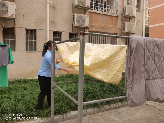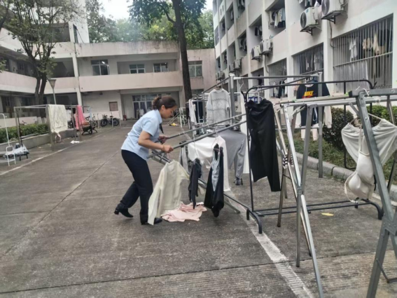 本周各园区值班员帮同学们晾晒和收回衣物、被褥等427件,发现及协助学生急救7人次,工作人员帮助同学找回丢失的自行车,同学赠予感谢信和锦旗表示感谢。