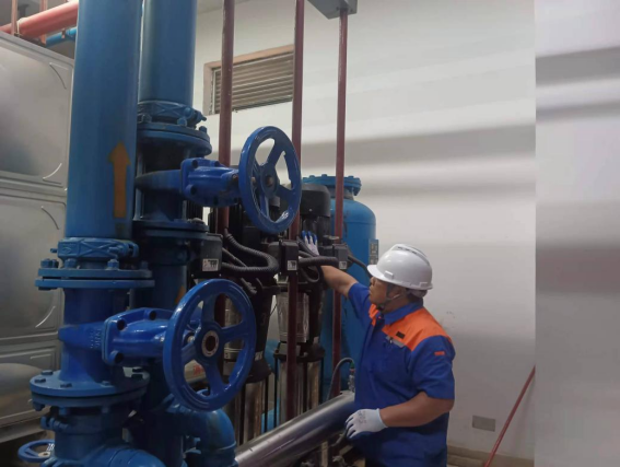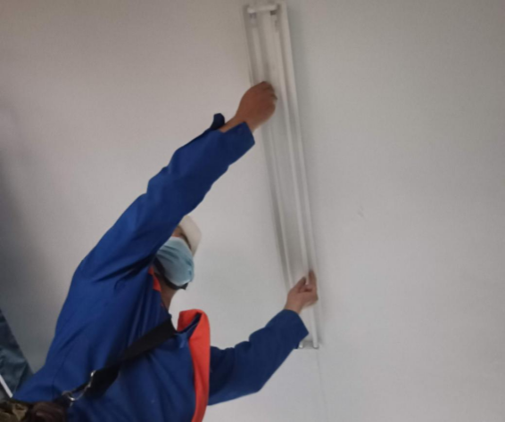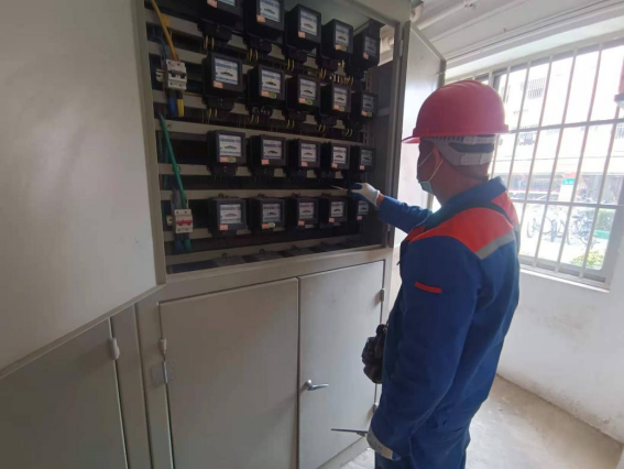 逐间对配电房进行线路排查,拧紧螺丝工作