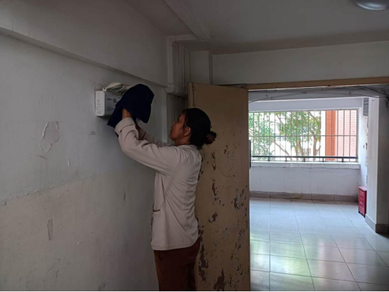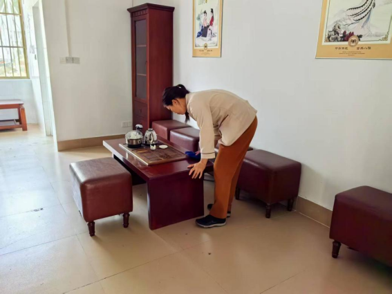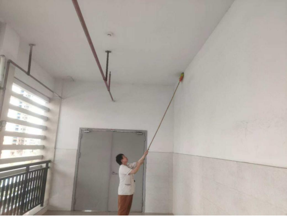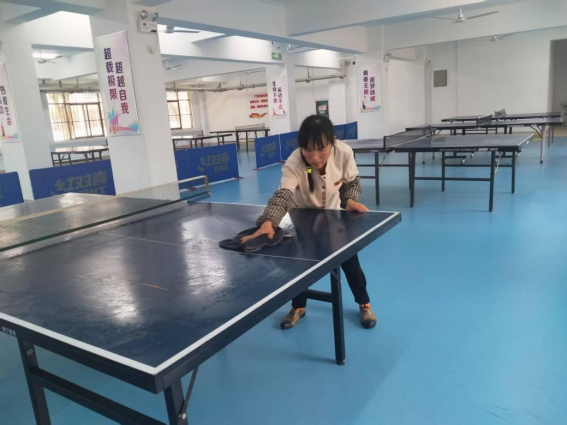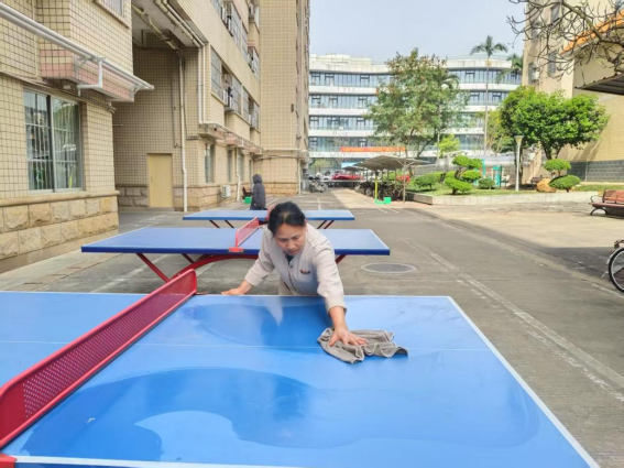 为营造学生公寓园区宜学宜居的环境,认真做好园区内消防设备设施、热水机组、洗涤设备等各种设备设施和40间自习室、15个多功能室的保洁维护工作;做好学生公寓园区内547个生活设施(其中公共长椅147张,乒乓球桌117张,晾衣架173个、健身器材110个)的维护工作。