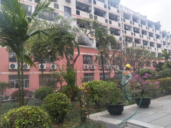 本周对各园区绿植进行一次绿化消杀工作,并对东8-11栋、南区进行绿化养护面积约6634平方米;各园区进行日常保洁约19万平方米,清理明沟水沟长度约3270米。