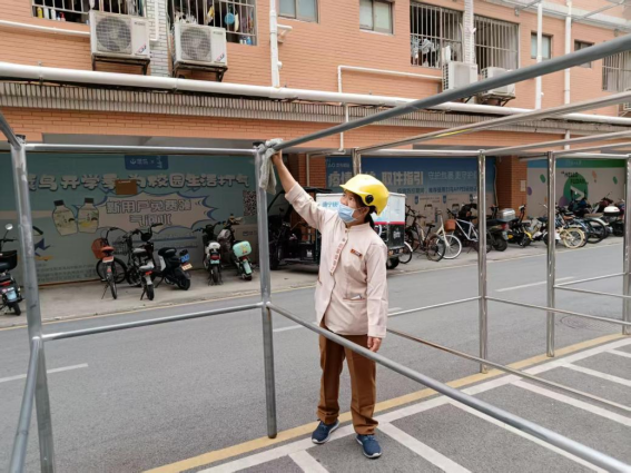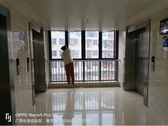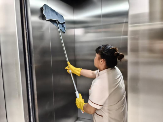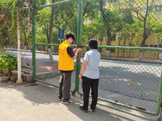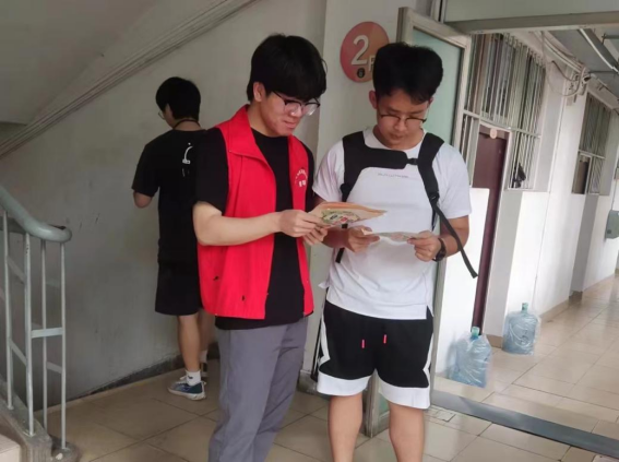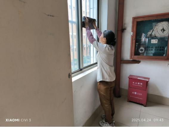 劳动教育岗同学协助阿姨进行楼栋卫生保洁工作