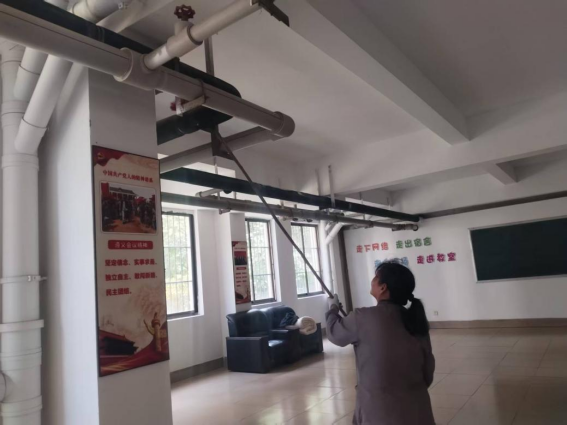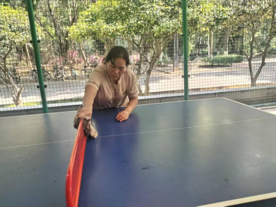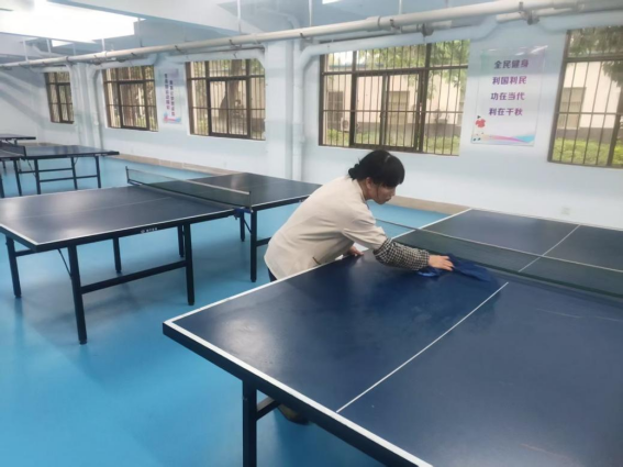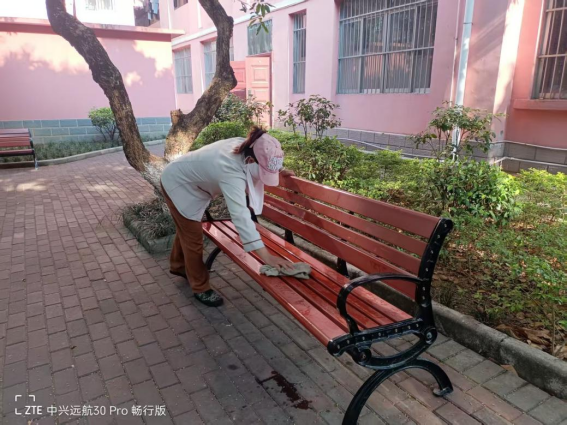 为营造学生公寓园区宜学宜居的环境,认真做好园区内消防设备设施、热水机组、洗涤设备等各种设备设施和40间自习室、15个多功能室的保洁维护工作;做好学生公寓园区内547个生活设施(其中公共长椅147张,乒乓球桌117张,晾衣架173个、健身器材110个)的维护工作。