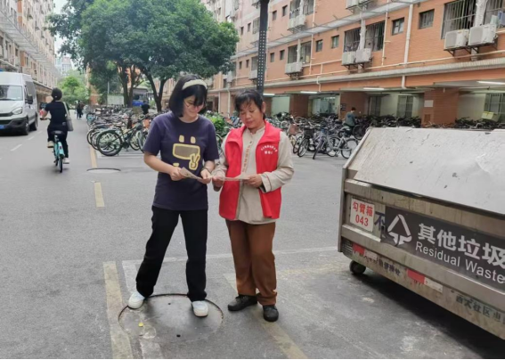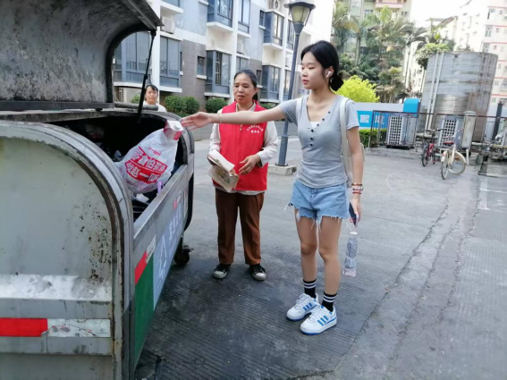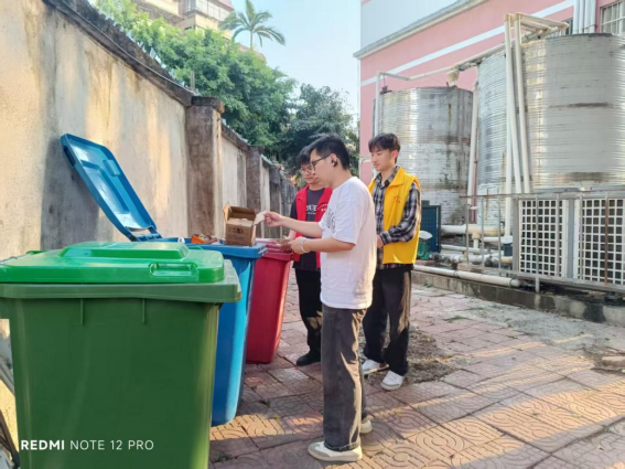 劳动教育岗同学协助督导员进行垃圾分类宣传工作