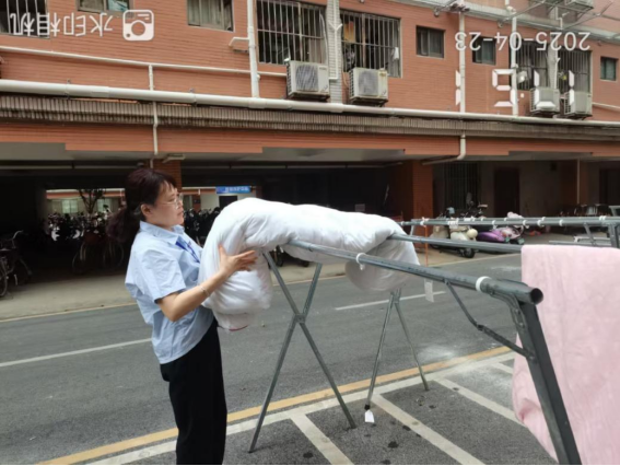 本周各园区值班员帮同学们晾晒和收回衣物、被褥等464件,发现及协助学生就医6人次。