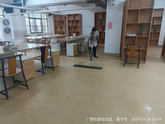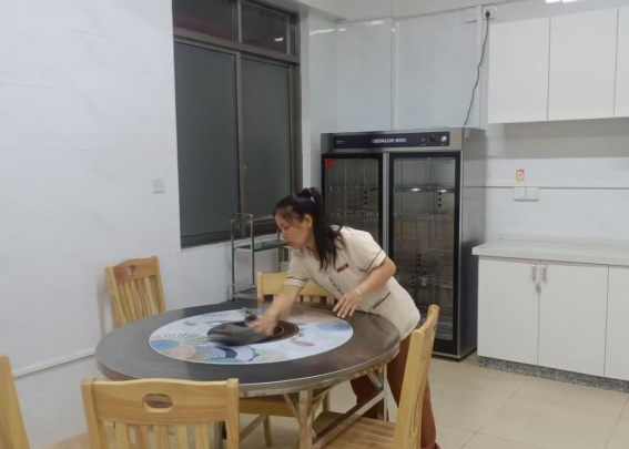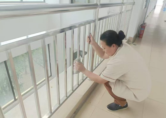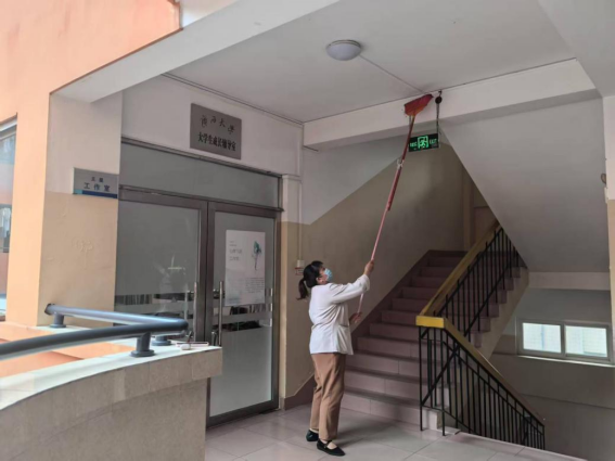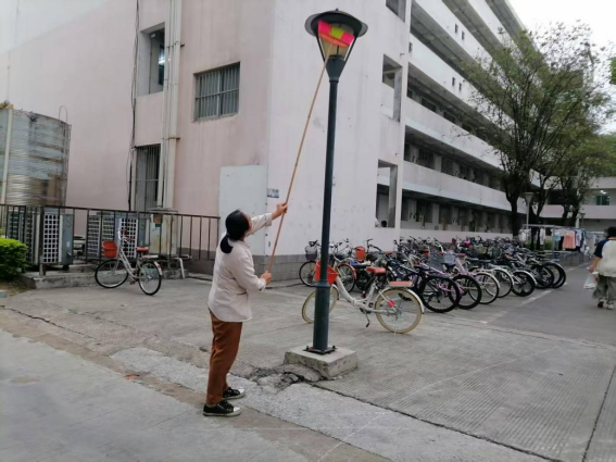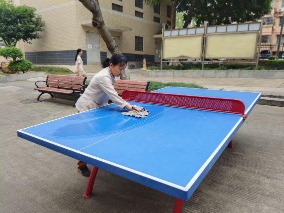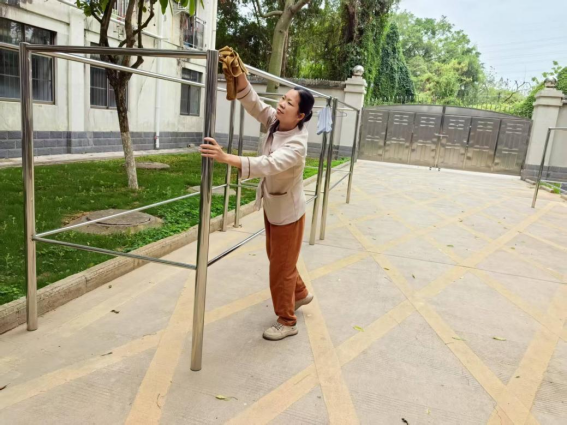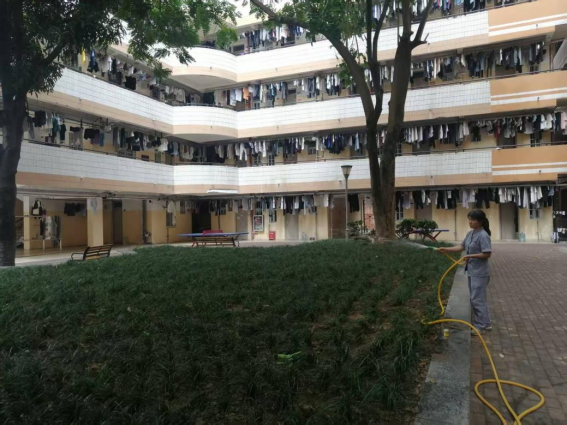 为营造学生公寓园区宜学宜居的环境,认真做好园区内消防设备设施、热水机组、洗涤设备等各种设备设施和40间自习室、15个多功能室的保洁维护工作;做好学生公寓园区内547个生活设施(其中公共长椅147张,乒乓球桌117张,晾衣架173个、健身器材110个)的维护工作。