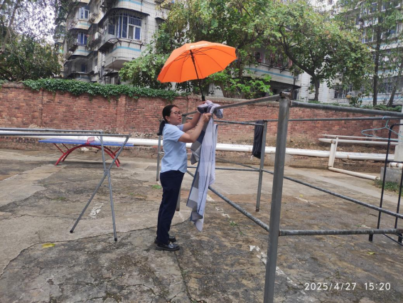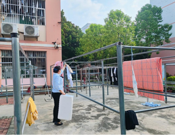 本周各园区值班员帮同学们晾晒和收回衣物、被褥等436件,协助学生就医8人次。