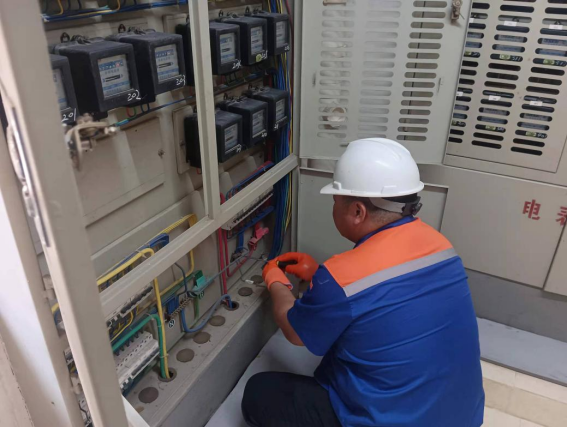逐间对配电房进行线路排查,拧紧螺丝工作