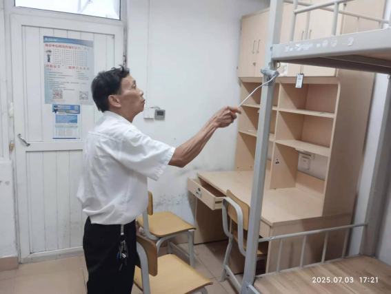 2025年6月28日-7月4日学生公寓共接单564单,其中给排水类212单、电气类134单、木工类131单、基建类19单、冷热水阀20单、其他48单,已完工549单,完工率97.34%,余15单在维修中。本周对毕业生房进行局部除锈涂漆196个生锈铁架床,完成毕业生房土建类检修120间,小型水电类检修184间,木工类检修47间。坚持对学生公寓84间配电房, 178个电表箱,2个水泵房日常巡检。