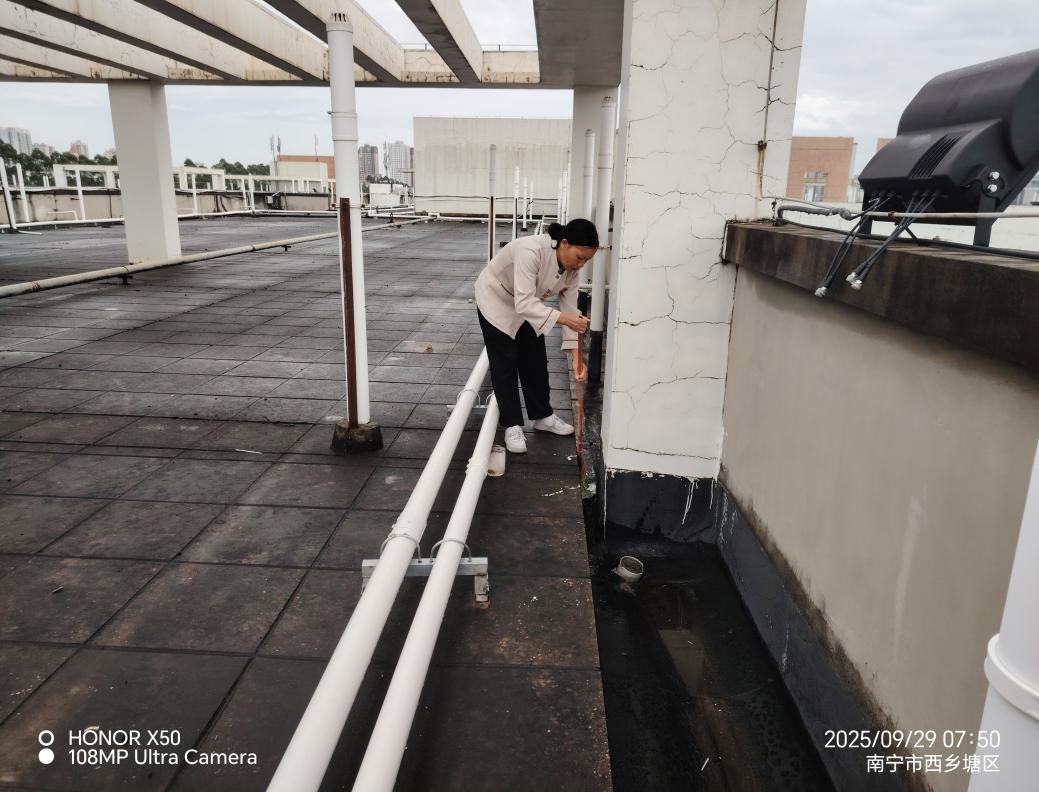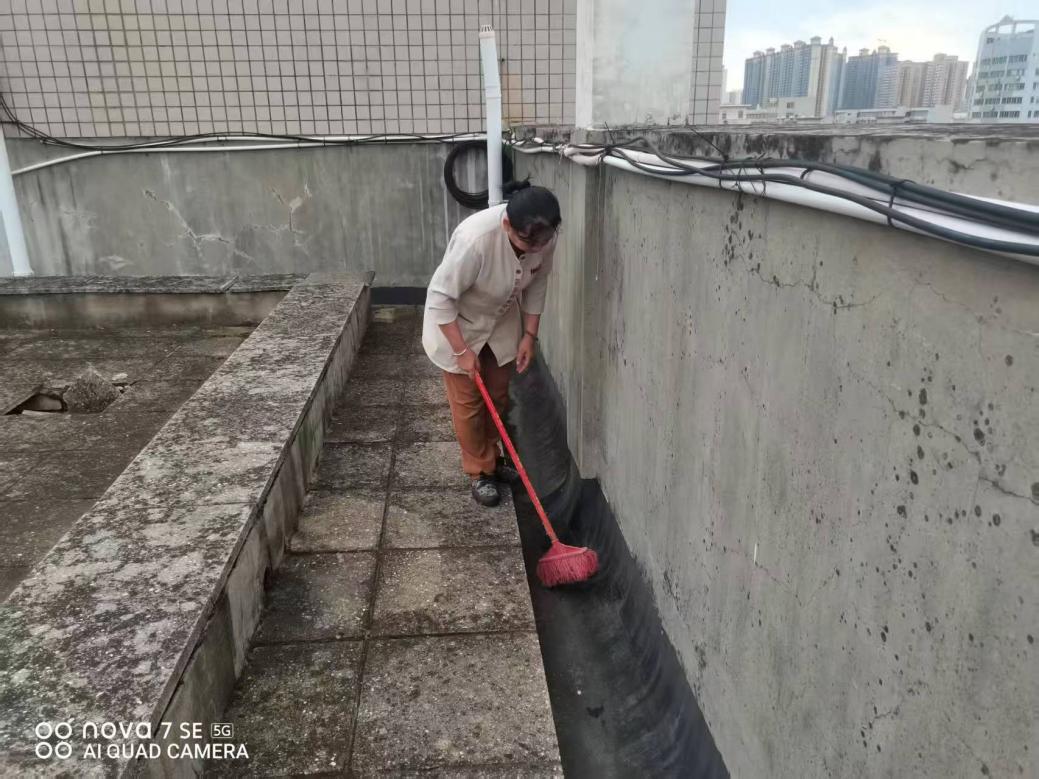 本周对东19栋、东27栋进行绿化带修剪及除草面积约4760.83平方米;各园区进行日常保洁约19万平方米,本周清理学生公寓86条明沟7次累计长度20846米;清理暗沟64条1次长度2251米。27个楼栋天面排水设施淤泥清理1次。