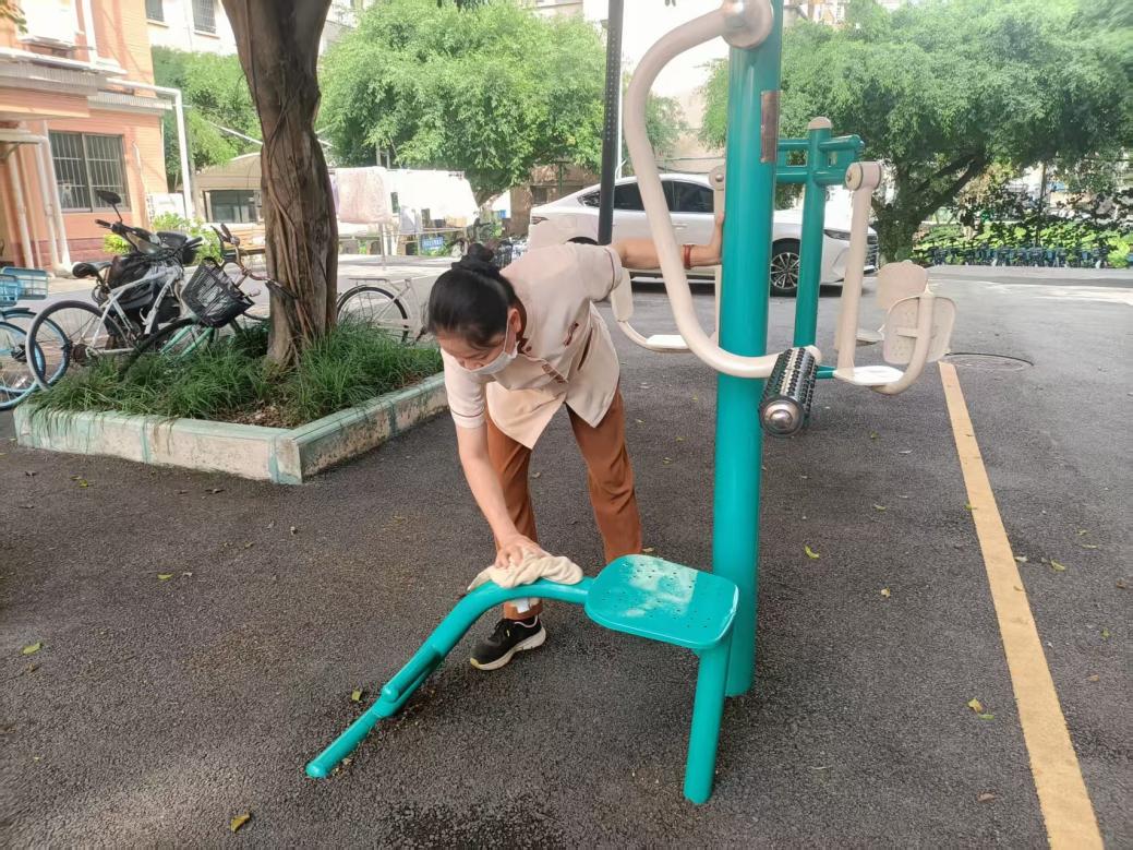 为营造学生公寓园区宜学宜居的环境,认真做好园区内消防设备设施、热水机组、洗涤设备等各种设备设施和41间自习室、18个多功能室的保洁维护工作;做好学生公寓园区内547个生活设施(其中公共长椅147张,乒乓球桌117张,晾衣架173个、健身器材110个)的维护工作。