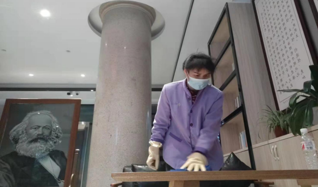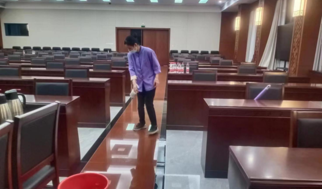 对校办楼、君武馆、新东园勤恳楼(后勤)、财务处、办公楼、大学生活动中心、保卫处等办公楼宇进行日常卫生保洁等服务工作。