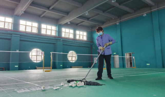 对东体育馆、网球中心、体育学院进行日常卫生保洁工作。
