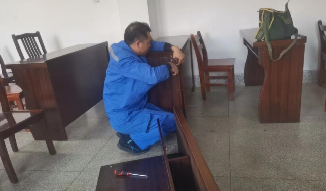 对学校公共设施进行日常巡查、维护,发现问题及时维修、抢修。本周共接单249单,其中电类83单,给水类21单,门窗类35单,排水类40单,疏通类35单,房屋本体类9单,桌椅类13单,其他类13单,完成223单。师生报修问题随报随修,确保公共设施正常运行。