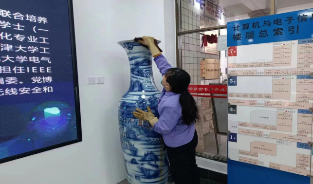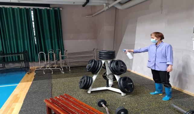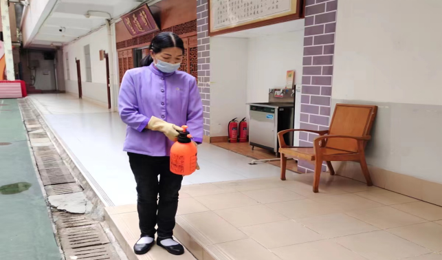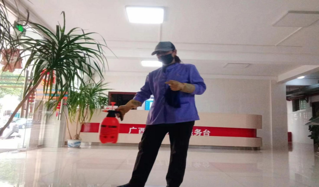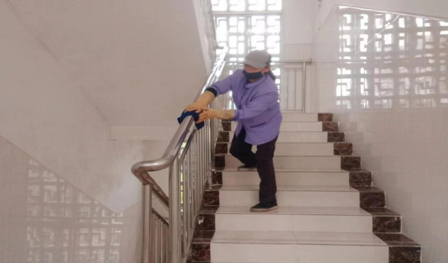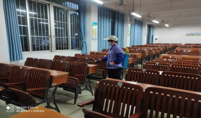 本周对公共教学楼宇的楼梯、走廊、门把手、课桌椅、电脑键盘、鼠标、水龙头、楼梯扶手、电梯间及按钮等高频接触表面进行重点杀菌消毒852次。