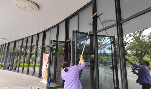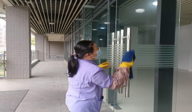 本周对校办楼、君武馆、新东园勤恳楼(后勤)、财务处、办公楼、大学生活动中心、保卫处、行健图书馆等办公楼宇进行日常卫生保洁等服务工作。