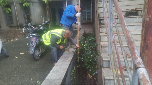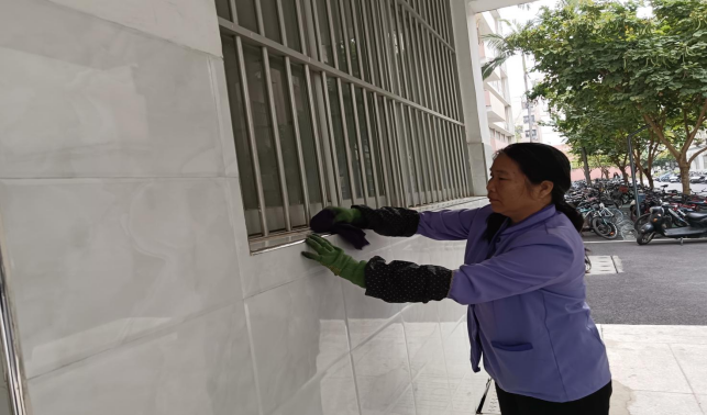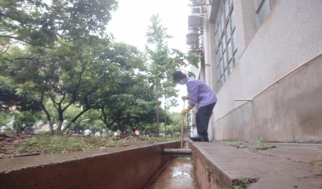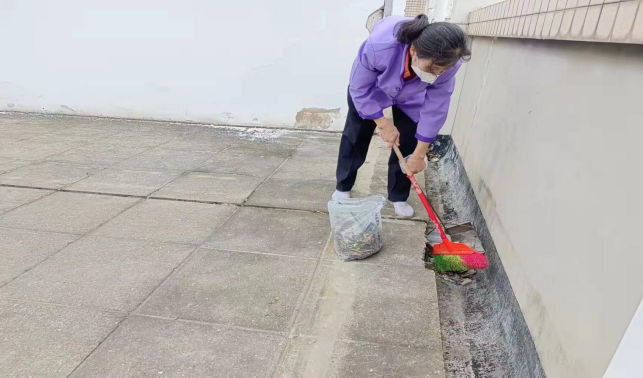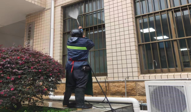 本周对语言中心、二教、三教、六教、十教、十一教、研究生院和行健学院一教、二教、三教、四教共11栋教学楼宇进行日常卫生保洁服务工作。清除公共楼宇外围寄生绿植3次,清理公共楼宇排水设施45次,冲洗公共楼宇露天区域4栋;清理公共楼宇天台31栋。