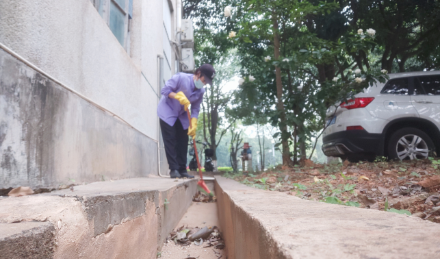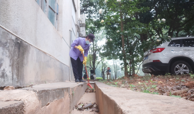 清理动科院楼宇外围排水设施