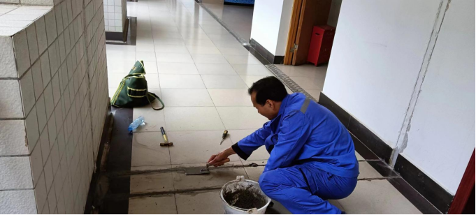 修补公管学院2楼至6楼走廊砖缝