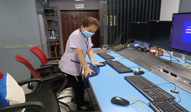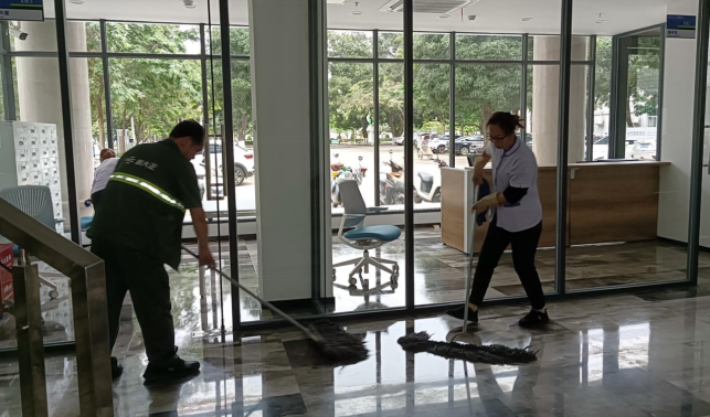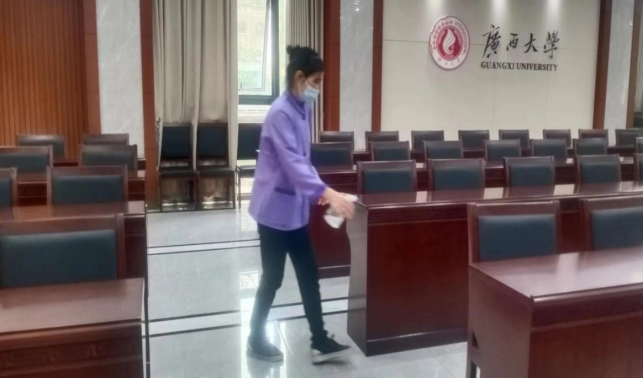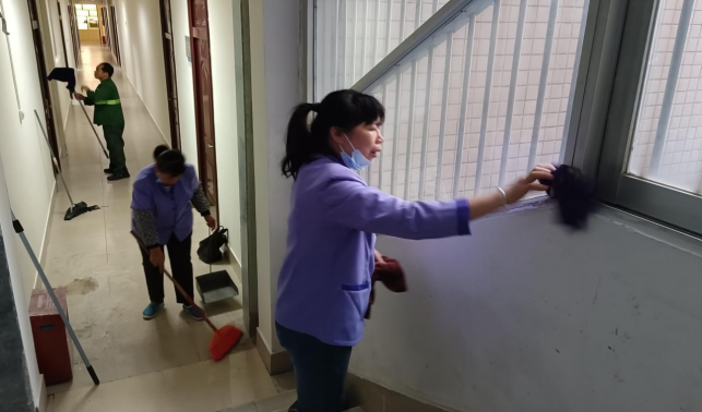 本周对校办楼、君武馆、新东园勤恳楼(后勤)、财务处、办公楼、大学生活动中心、保卫处等办公楼宇进行日常卫生保洁等服务工作。