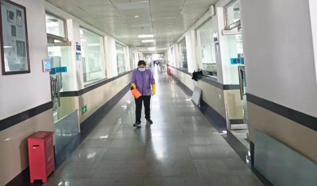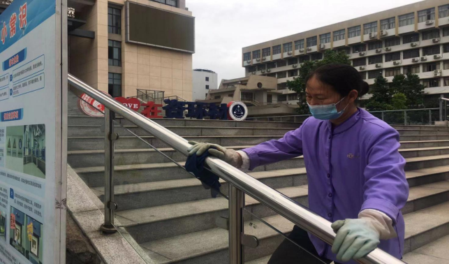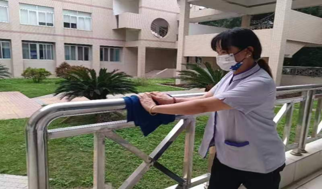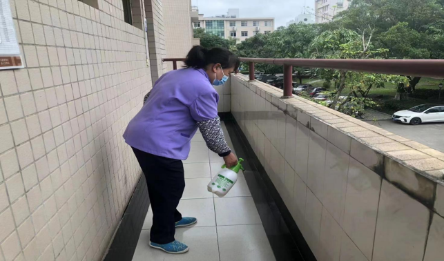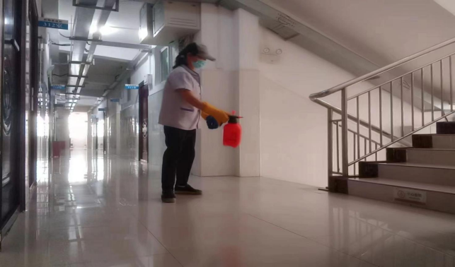 本周对公共教学楼宇的楼梯、走廊、门把手、课桌椅、电脑键盘、鼠标、水龙头、楼梯扶手、电梯间及按钮等高频接触表面进行重点杀菌消毒972次。