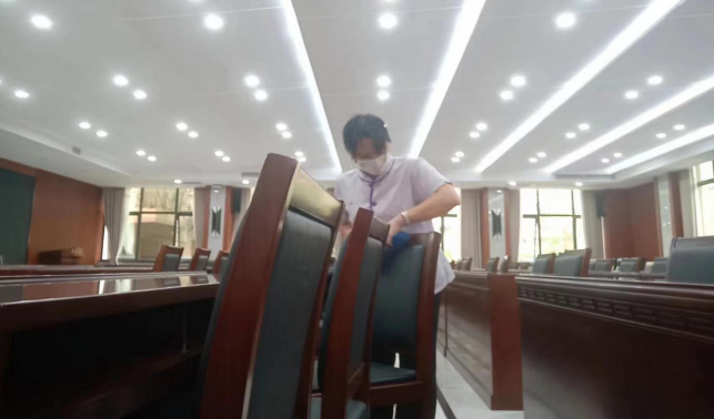 本周做好会场布置、会前、会后保洁及会务各项服务共计45场,其中重要接待18场。