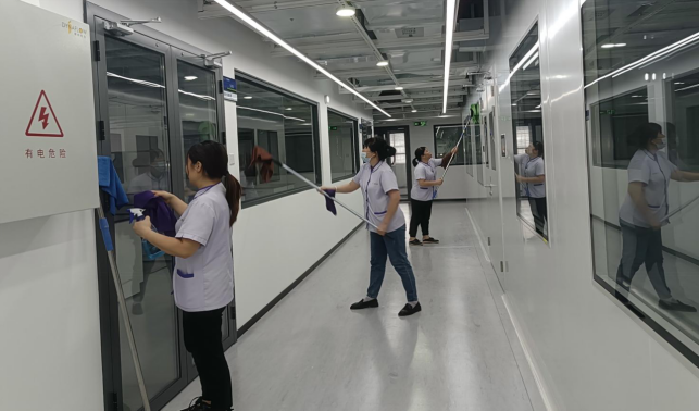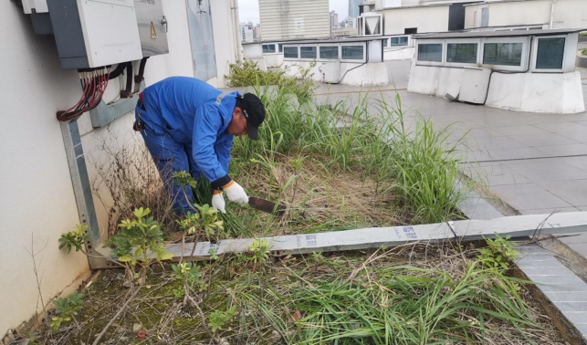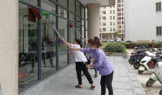 本周对语言中心、二教、三教、六教、十教、十一教、研究生院和行健学院一教、二教、四教共11栋教学楼宇进行日常卫生保洁服务工作,清理公共楼宇排水设施42次,冲洗公共楼宇露天区域2栋;清理公共楼宇天台32栋。
