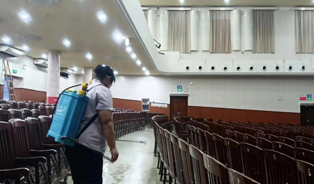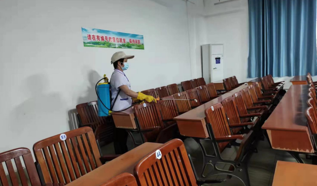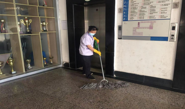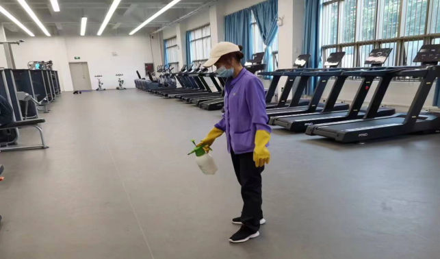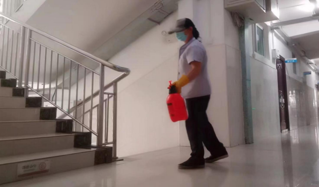 本周对公共教学楼宇的楼梯、走廊、门把手、课桌椅、电脑键盘、鼠标、水龙头、楼梯扶手、电梯间及按钮等高频接触表面进行重点杀菌消毒955次。