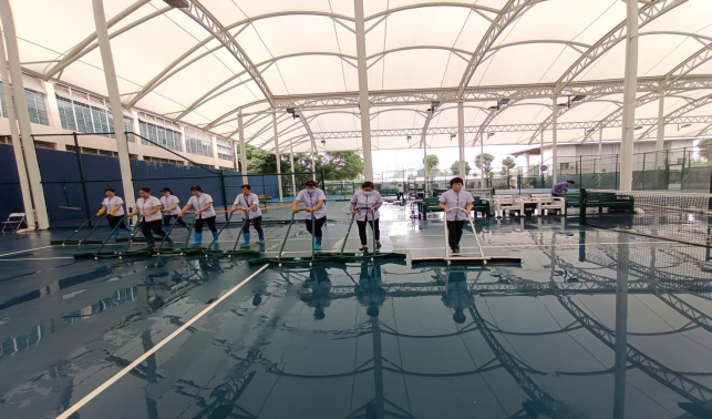对东体育馆、网球中心、体育学院进行日常卫生保洁工作。
