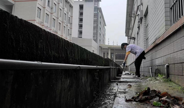 对语言中心、二教、三教、六教、十教、十一教、研究生院和行健学院一教、二教、四教共11栋教学楼宇进行日常卫生保洁服务工作,本周清除公共楼宇外围寄生绿植2次,清理公共楼宇排水设施34次,清理公共楼宇天台30栋。