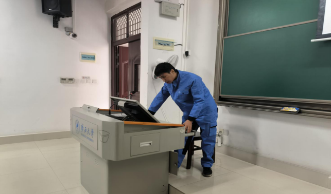 对二教(34间)、三教(36间)、十教B(19间)、研究生院(23间)、六教(165间)共计277间多媒体教室教学设备和标准化考场设备进行排查检修,专项维护43次,确保教学工作及重大考试期间标准化考场设备正常运转。