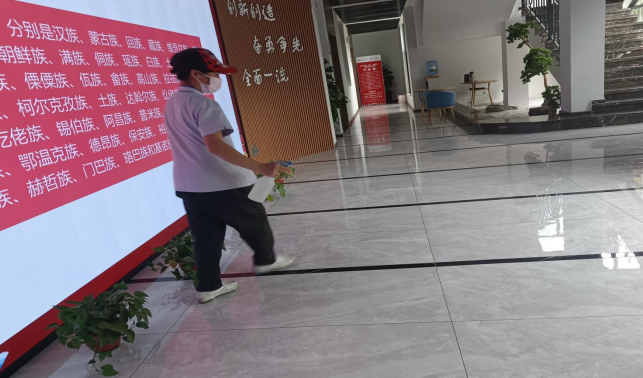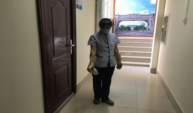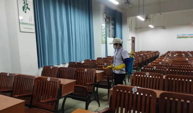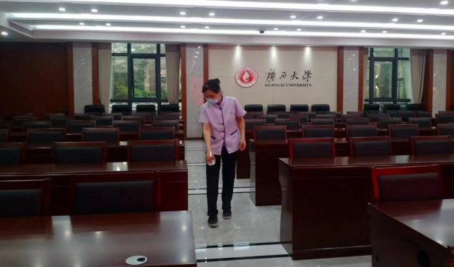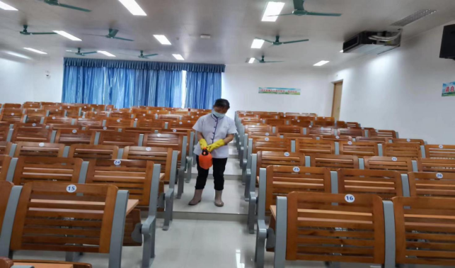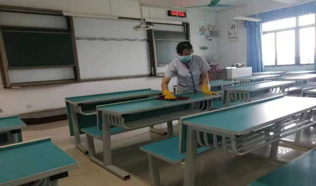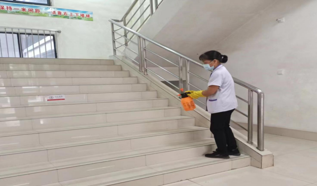 本周对公共教学楼宇的楼梯、走廊、门把手、课桌椅、电脑键盘、鼠标、水龙头、楼梯扶手、电梯间及按钮等高频接触表面进行重点杀菌消毒1011次。