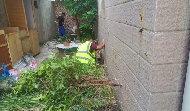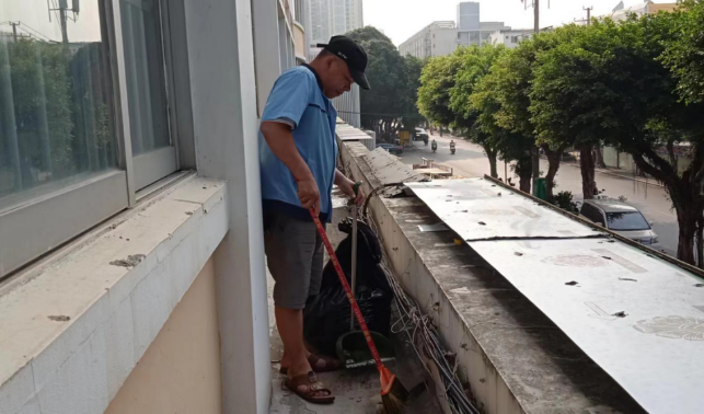 对语言中心、二教、三教、六教、十教、十一教、研究生院和行健学院一教、二教、四教共11栋教学楼宇进行日常卫生保洁服务工作,本周清除公共楼宇外围寄生绿植4次,清理公共楼宇排水设施35次,清理公共楼宇天台32栋。